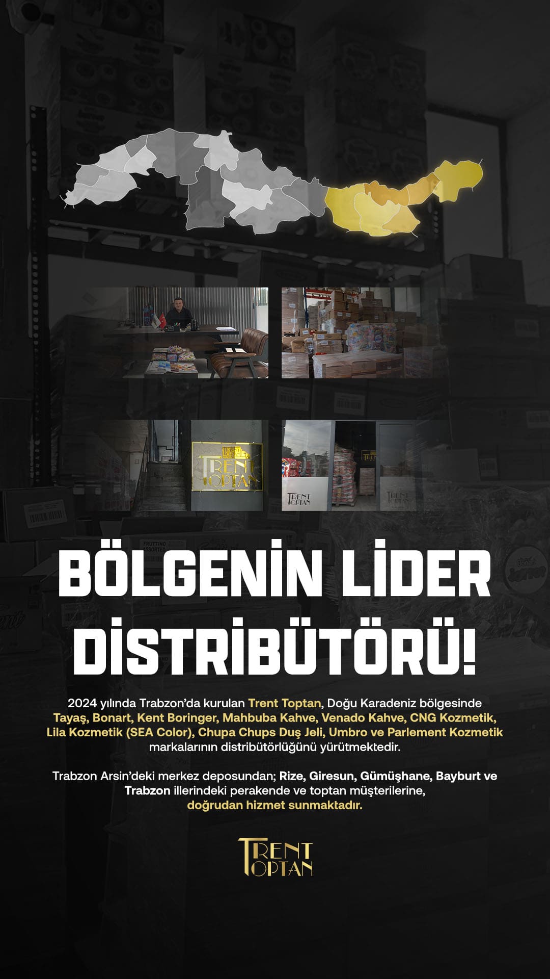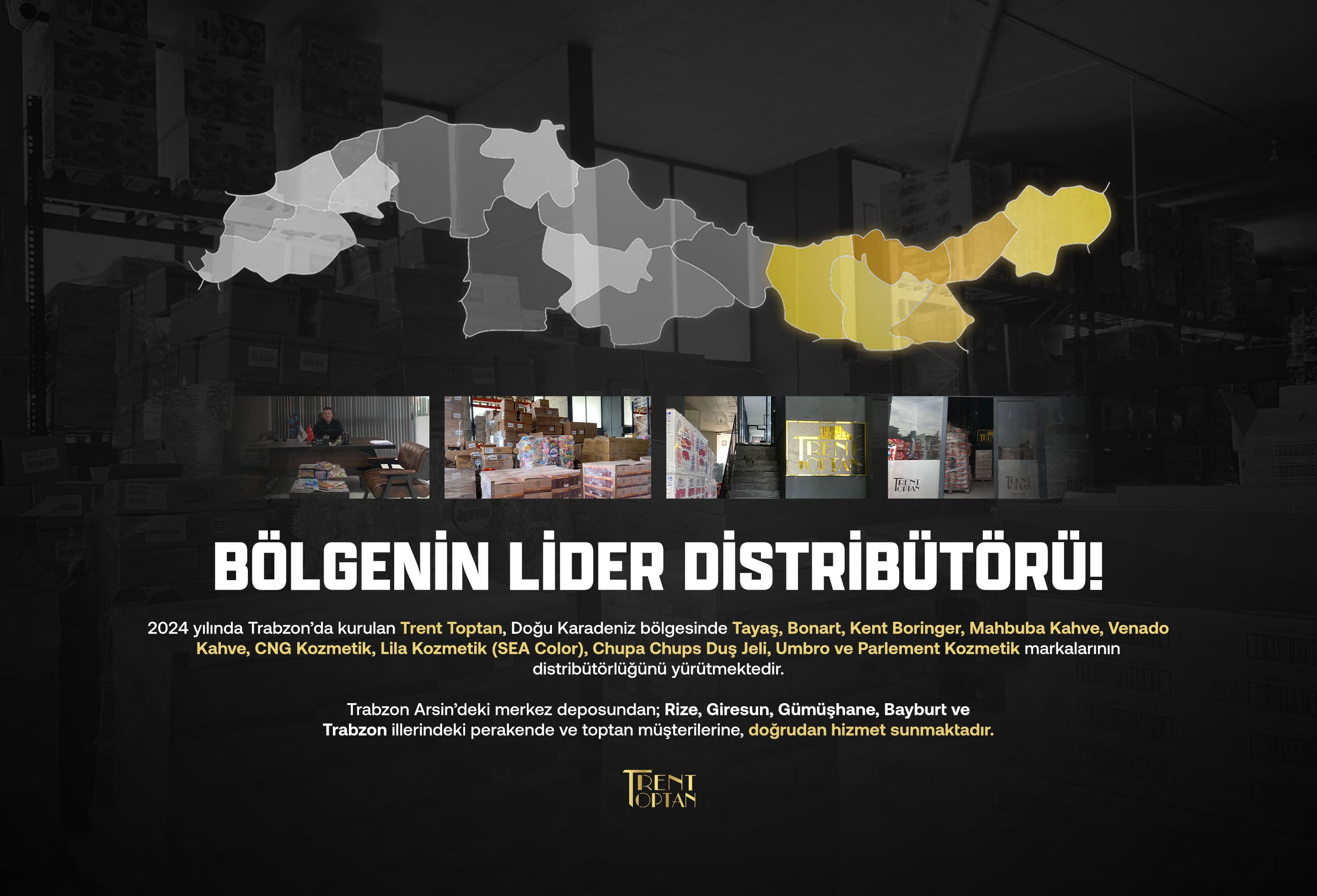 2024’te Trabzon’da kurulan Trent Toptan; Tayaş, Bonart, Kent Boringer, Mahbuba Kahve, Venado Kahve, CNG Kozmetik, Cire Aseptine, Duş Jeli, Umbro ve Parlement Kozmetik markalarını, bölgedeki perakende ve toptan noktalarına ulaştırır.
